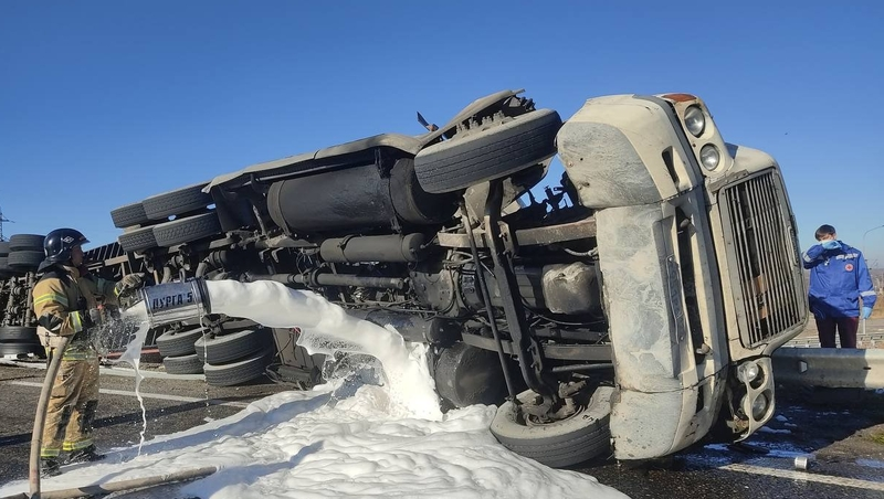 Сейчас сотрудники чрезвычайного ведомства ликвидируют последствия ДТП, смывают с трассы разлившееся топливо. Точные причины и обстоятельства ЧП выясняются.