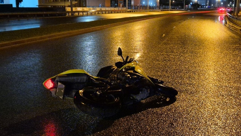 Водитель мотоцикла Yamaha на высокой скорости ехал по трассе, не уследил за управлением и врезался в движущийся впереди автомобиль Haval. От удара иномарка въехала в бордюр и опрокинулась.