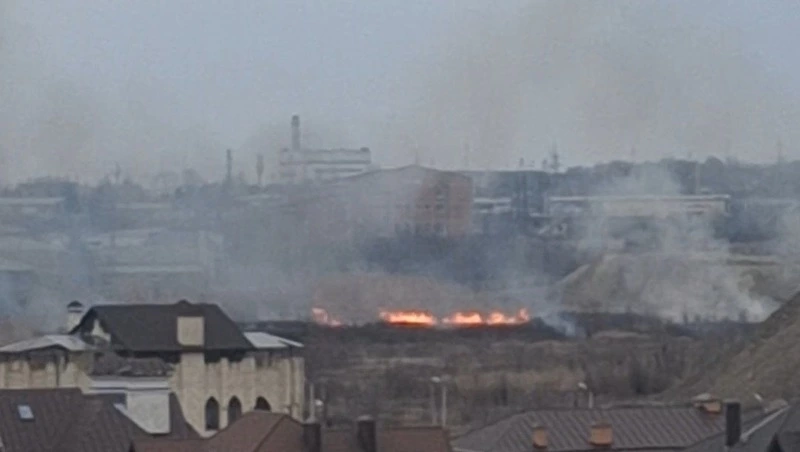 Жители многоэтажки на улице Ермолова засняли крупный пожар вблизи частного сектора. Сухостой загорелся около 17:00 рядом с частными домами по улицам Севастьянова и генерала Воронцова.