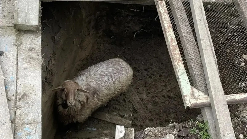 Воспользовавшись альпинистским снаряжением и верёвками, спасатели вызволили барана из глубокой ямы и передали его хозяйке. К счастью, животное не пострадало.
