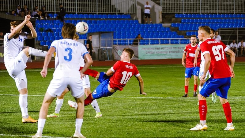 При такой активной раздаче «дисциплинарных слонов» было понятно, что вскоре ставропольские парни могут остаться в меньшинстве. Так и случилось – на 38-й минуте второй «горчичник» заработал центральный защитник Егор Иванов, автоматически увидевший перед собой красную карточку. И почти тут же хозяева имели роскошный шанс для взятия ворот — после удара ростовского нападающего Руслана Рзаева мяч угодил в штангу.