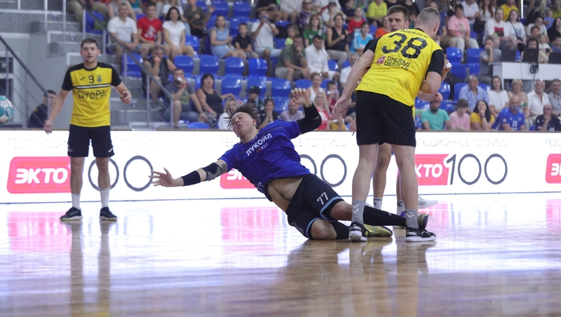 Вторым номером субботней программы значилось противостояние с участием клубов «СГАУ-Саратов» и астраханского «Динамо». За две с половиной минуты соперники забили пять мячей, а за первые полчаса — три с половиной десятка голов. Обмен мячами продолжался вплоть до перерыва, счёт был 20:16 в пользу астраханцев.