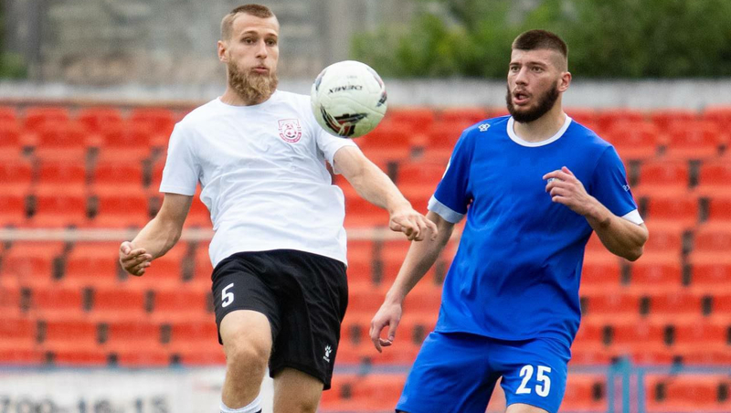 На исходе первого получаса матча Данил Полях имел возможность открыть счёт, но не попал как следует по мячу. Почти тут же хозяева ответили выпадом от Руслана Суанова, но его удар в упор Владислав Кучейко смог отразить, блеснув отменной реакцией. Под занавес первого тайма мяч всё-таки побывал в воротах – причём хозяйских. Данил Полях решился на дальний удар, мяч подпрыгнул прямо перед носом у вратаря Олега Суворова и юркнул в сетку — 0:1.