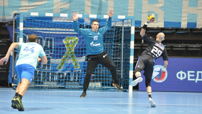 После перерыва некоторое время соперники шли на равных, но затем преимущество принимающей стороны стало практически безоговорочным. Главными героями стали вратари: ставрополец Станислав Третынко отбил 14 атак, а ворота питерской команды защищал Виктор Киреев, который также отбил 14 мячей.