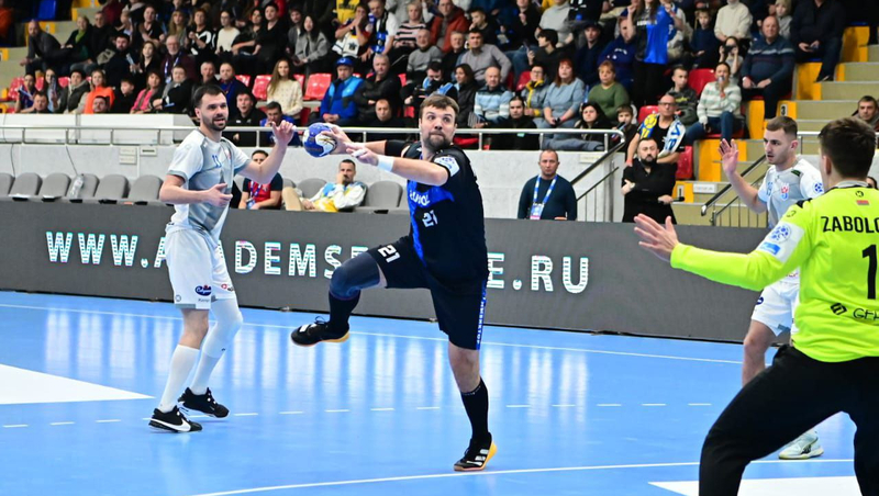Неплохо шли дела у хозяев и в атаке. На седьмой минуте Иван Пасенов с семиметровой отметки оформил перевес в два мяча — 4:2, вскоре Виталий Мазуров довёл отрыв до трёх пунктов — 5:2, Павел Максимов сделал «плюс четыре» — 7:3, а Иван Некрасов могучим дальним броском создал преимущество в пять баллов — 9:4.