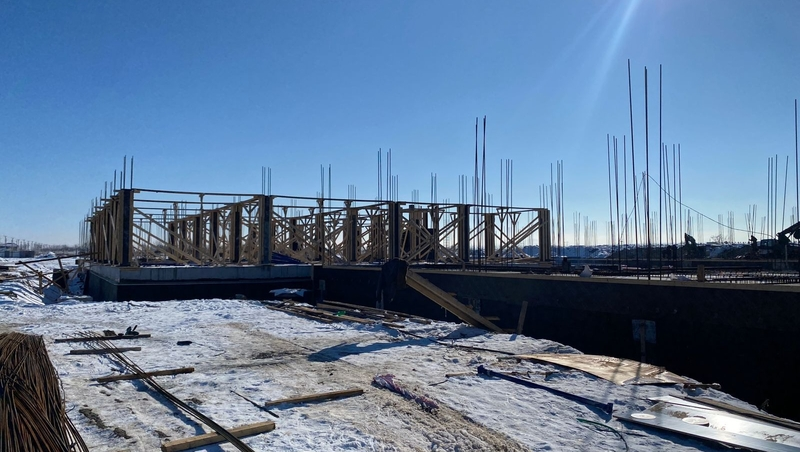 Уже готов фундамент будущей школы, построены пристенные дренажи и водовыпуски в водостоки. Рабочие приступили к вязке арматуры каркаса стен.