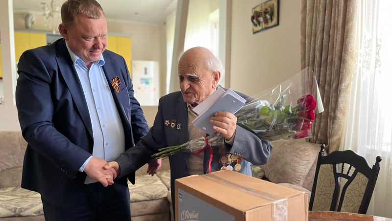 Депутат Думы Ставрополья Игорь Лавров поздравил участника ВОВ — полковника-инженера в отставке, кандидата технических наук, доцента Петра Пашинцева.