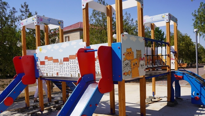 На объекте уже уложили новую тротуарную плитку, залили бетоном детскую площадку, установили современную систему освещения. Сейчас специалисты монтируют системы автополива и видеонаблюдения, игровые элементы детского городка. Запланировано и озеленение участка.