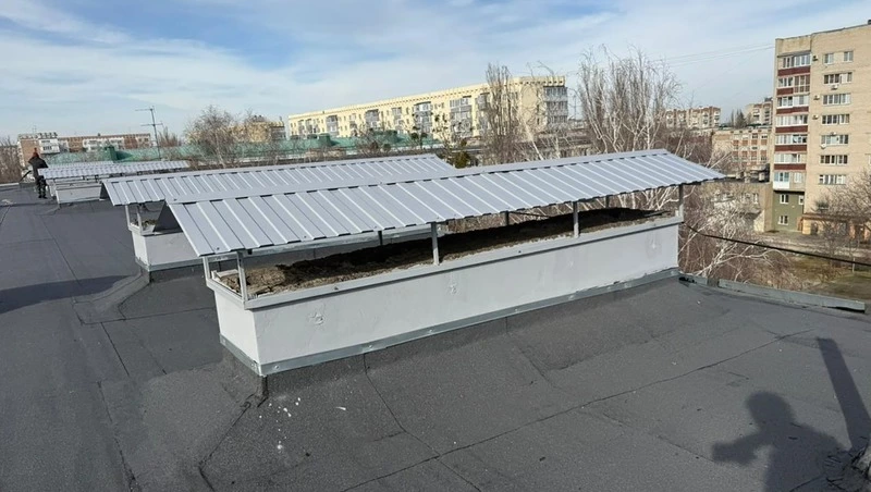 Рабочие демонтировали старое кровельное покрытия, утратившее герметичность, и уложили современный трёхслойный материал, устойчивый к погодным капризам. Особое внимание уделили примыканиям, в которых наиболее часто возникают протечки. Они были тщательно загерметизированы. Кроме того, плдрядчики восстановлены вентиляционные каналы, смонтировали водосточную систему и ограждение.