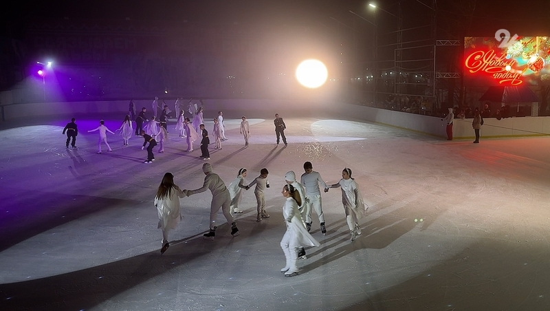 В ледовом шоу поучаствовали спортсмены разных возрастов, ученики Ставропольского президентского кадетского училища и члены семей участников СВО. Фигуристы продемонстрировали одиночное и синхронное фигурное катание, коллективные танцевальные направления и спортивный балет на льду.